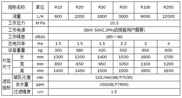 R系列聚結(jié)分離式凈油機(jī)參數(shù):
