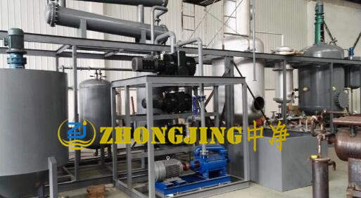 廢黑油機油脫色提煉基礎油柴油成套設備主要通過蒸餾對廢油進行凈化再生處理,根據廢油的不同污染源及所含雜質特性,能有效除去廢油中的磨屑,瀝青質,蠟質,雜質,水份,酸質,有機酸和無機酸等。在廢油中,油品變質只是其中部分烴類,其余大部分烴類組成仍是潤滑油的主要粘度載體,只要除去變質物及雜質,就能把廢油再生成質量符合要求的基礎油,然后按照需要加入各種添加劑,制得所需要的成品油。主要處理的廢油有(廢機油、廢液壓油、廢齒輪油、廢黑油、廢淬火油、廢重油、廢柴油、廢潤滑油、 廢輪胎油、廢塑料油、廢切削油等)。廢機油再生蒸餾設備屬于節能環保產品,在處理過程中廢氣由專門的廢氣回收系統處理,無空氣污染,處理后的油泥殘渣可作為燃料再次使用。
