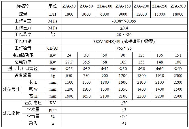 ZJA系列智能雙級絕緣油真空凈油機參數(shù):