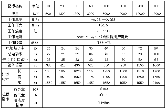 H系列液壓油小型精密濾油機產(chǎn)品參數(shù):
