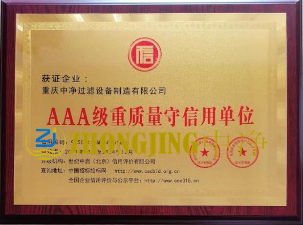 以上內容就是講的關于誠信單位證書:想了解更多相關的內容,請持續關注重慶中凈過濾設備制造有限公司網站,公司網編還會繼續更新真空濾油機相關的知識,歡迎來電咨詢與定制。